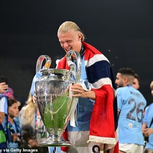 Inside Man City ‘𝓒𝓡𝓐𝓩𝓨’ dressing room after the Champions League victory made Haaland bite the medal