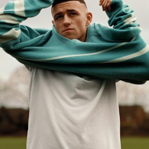 Phil Foden’s story originally appeared in i-D’s The New Worldwi-De Issue, no. 363, Summer 2021. Above the pumps are a pair of Martine Rose jeans and a crisp v-neck Pringle…