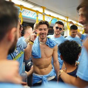 Erling Haaland and Jack Grealish Lead Man City Bus Parade, Going Shirtless in Celebration of Treble Win