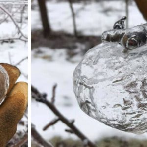 Farmer snaps rare ‘ghost apples’ in the freezing Midwest